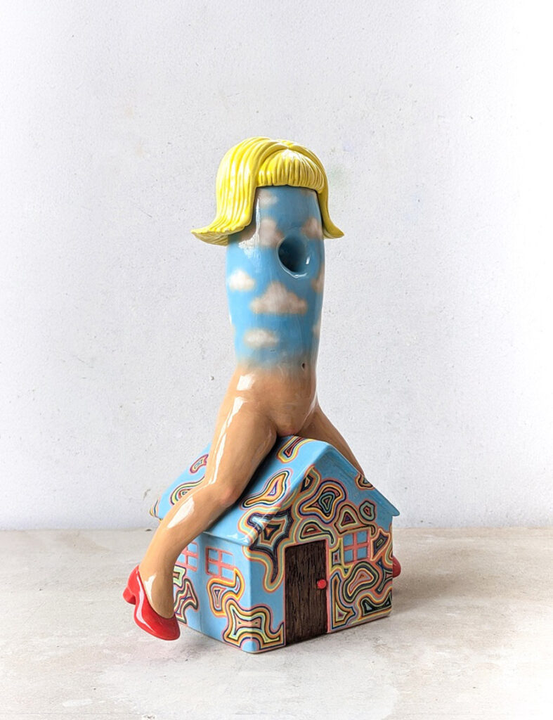 At the heart of this project, the house and the body meet and transform each other. The boundaries between them blur, portraying both home and subject as unstable, shifting spaces, terrains of disjunction and experiences of strangeness. Each sculpture becomes a poetic hybrid, where the intimate and the collective, the real and the fictional, intersect and transform.