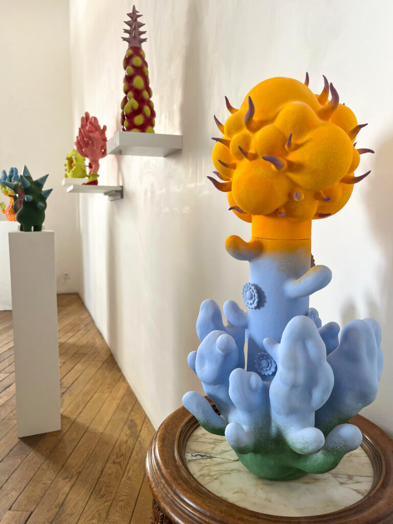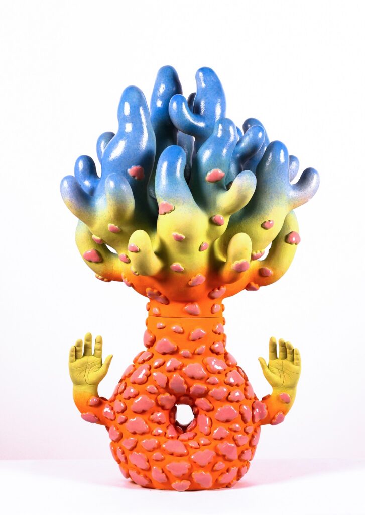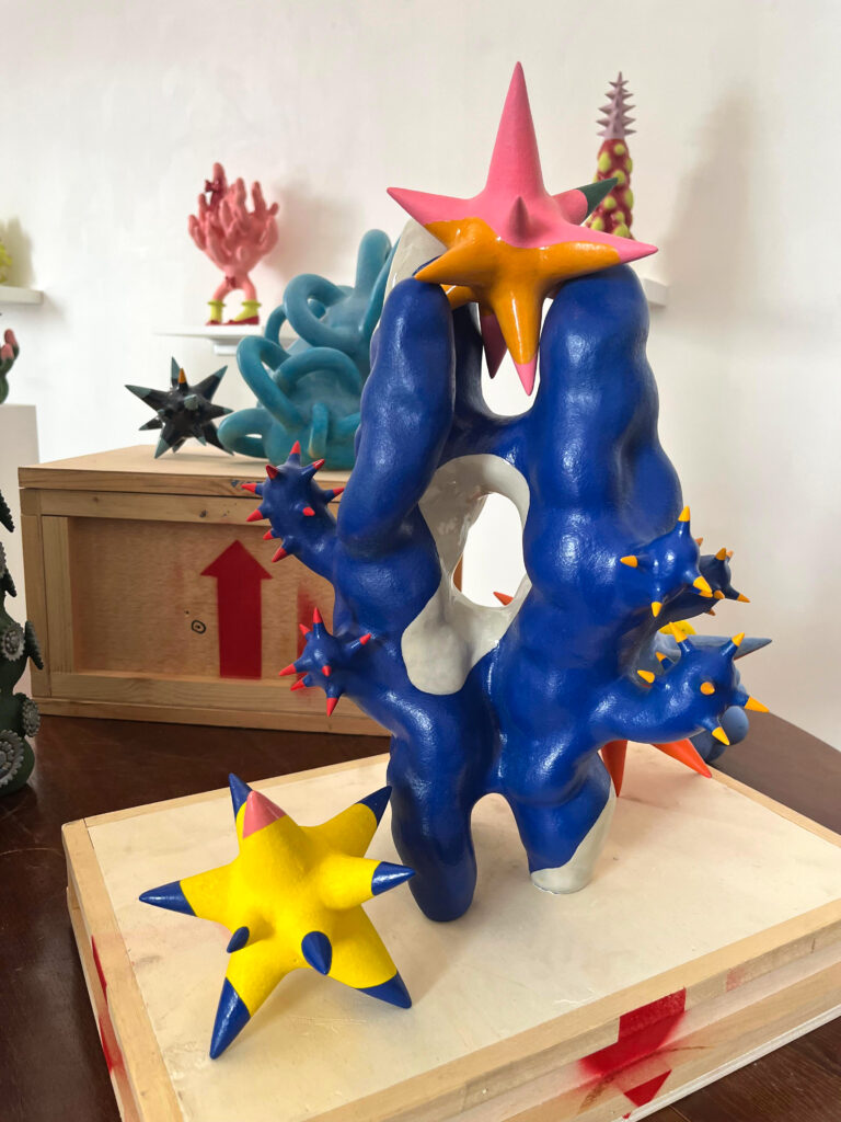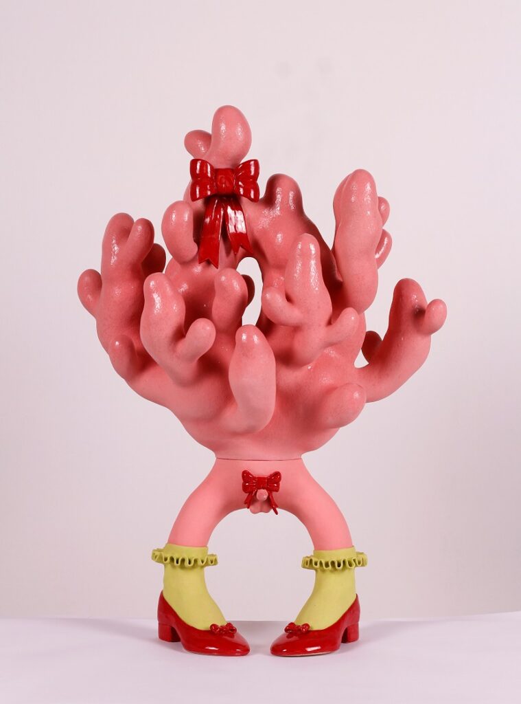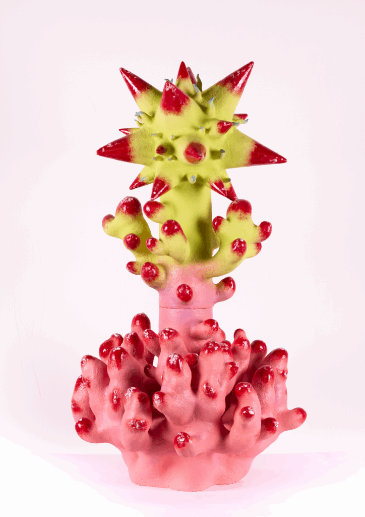 Pourtant, au-delà de cette fixité, le corail incarne également la fragilité et l’impermanence. Exposé aux courants, aux variations, à l’érosion, il demeure vulnérable. Ces qualités se manifestent à travers des formes extravagantes, des couleurs vibrantes et des traits organiques. Elles rappellent ce qui persiste dans l’univers du possible : ce qui n’est pas encore advenu, suspendu dans une temporalité incertaine — là où tout reste à se transformer.