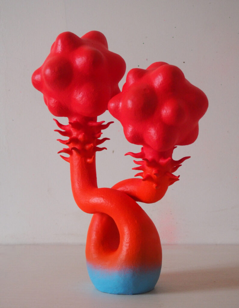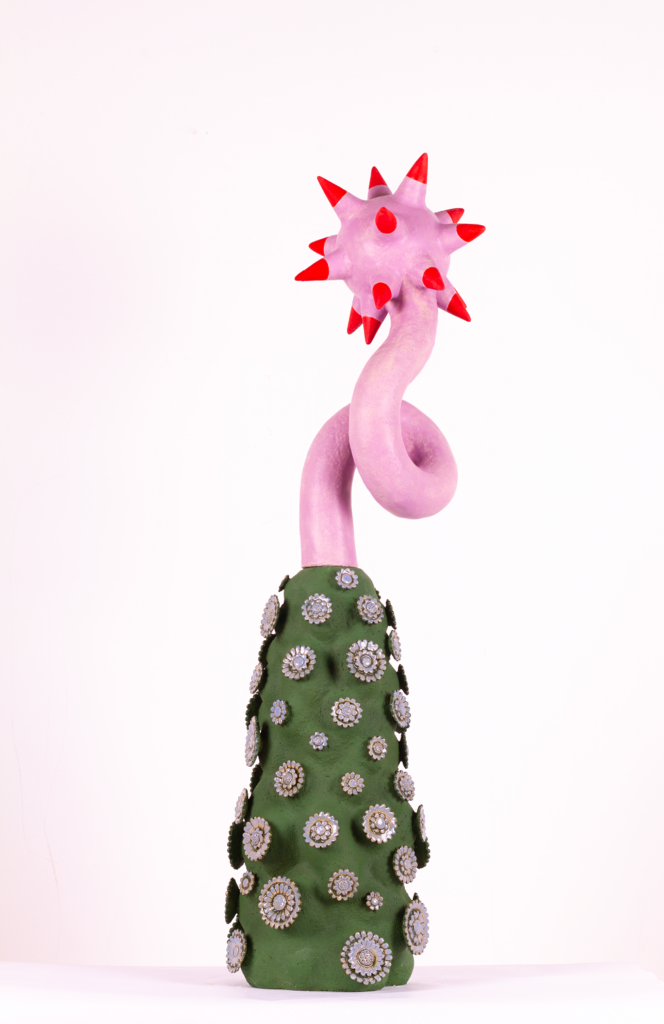 The earliest works in this series, created in ceramics, mark a starting point in my sculptural practice and opened the research I continue today. They emerge from a process of free associations, nourished by the random forms and elements that surround me in daily life. This intuitive gesture becomes a way to tame anxiety and transform the ordinary into fictional material.