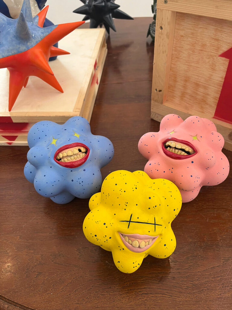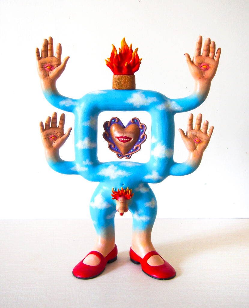 These works take the form of fantastic entities shaped by diverse influences, including Mexican popular culture. They give rise to hybrid figures where elements of everyday life mingle with imagination, organic and bodily forms. Clouds, hearts, ex-votos, animals, and clowns coexist with images drawn from dreams and nightmares.