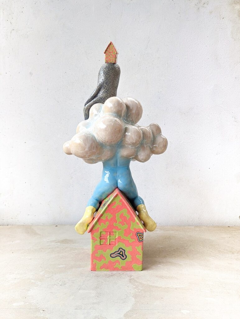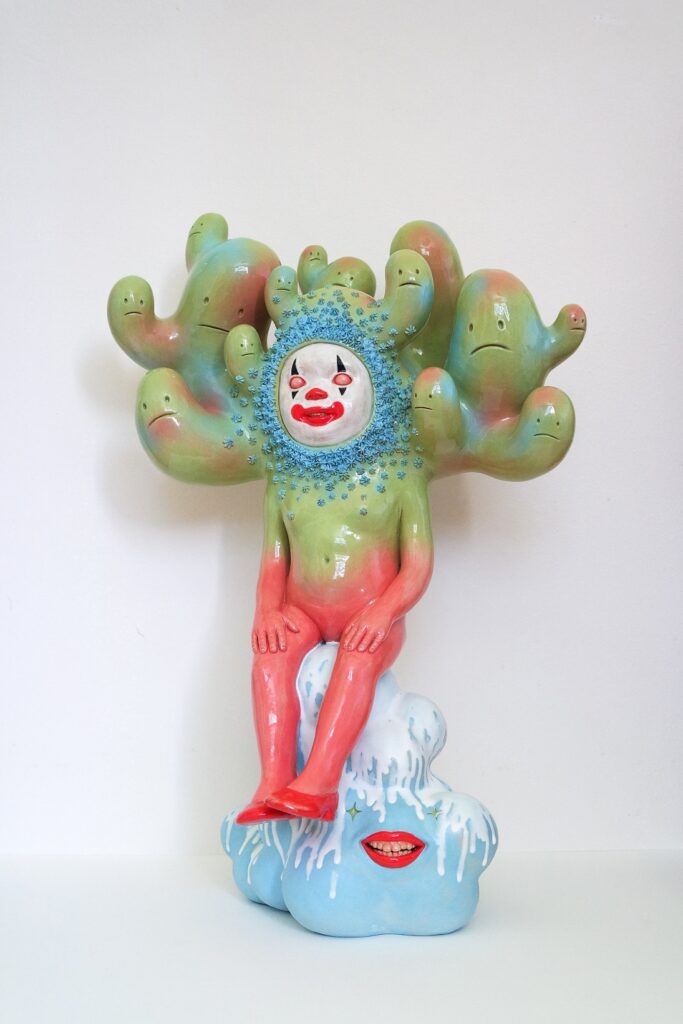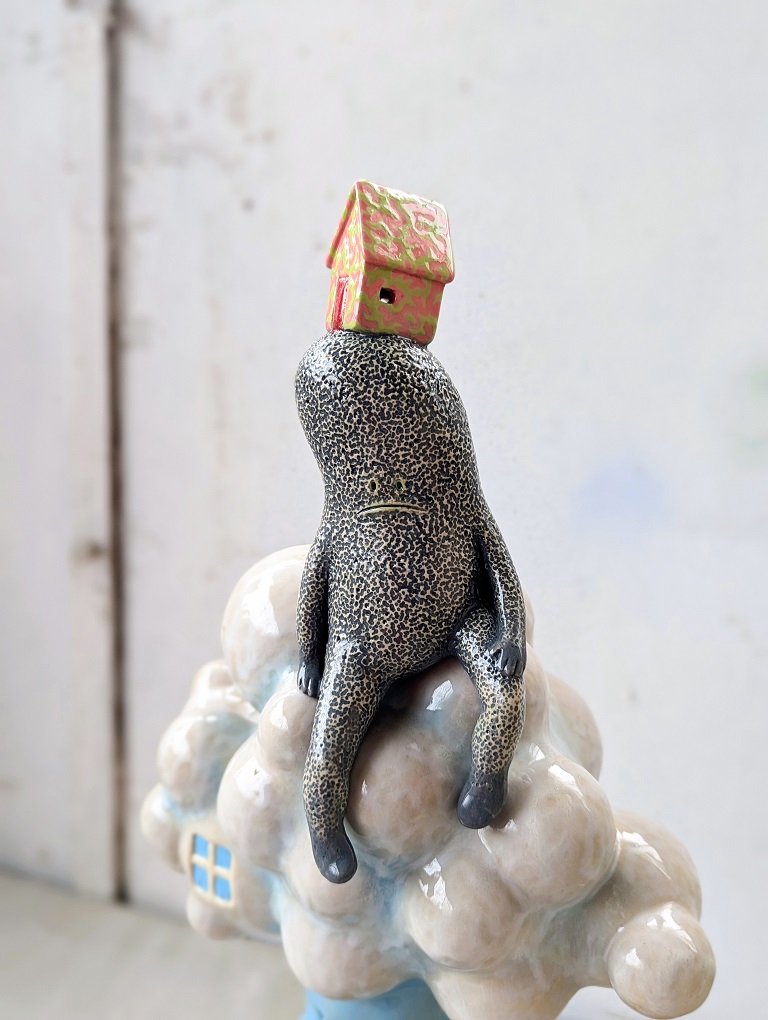 Claude the Clowd, 2026, stoneware with engobe and glaze, 59 x 40 x 28 cm