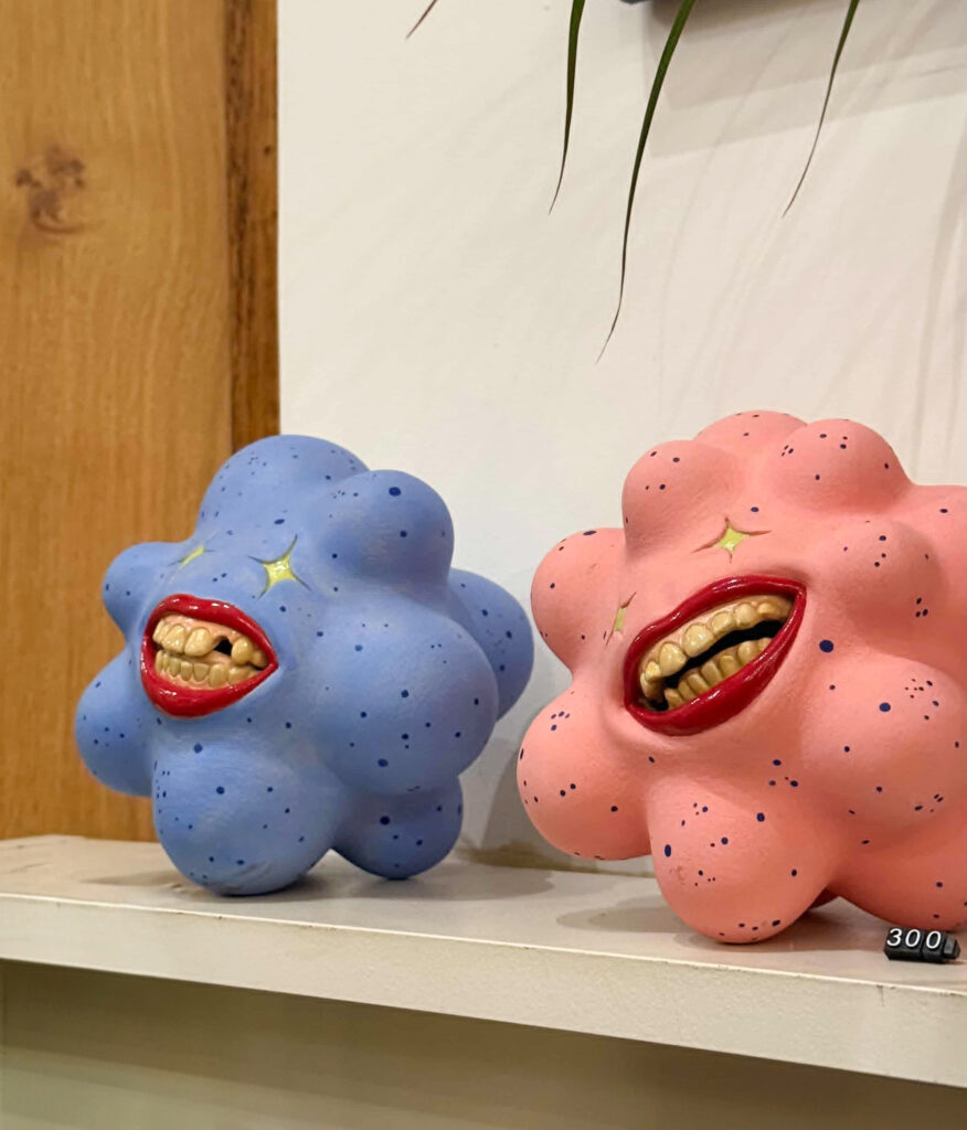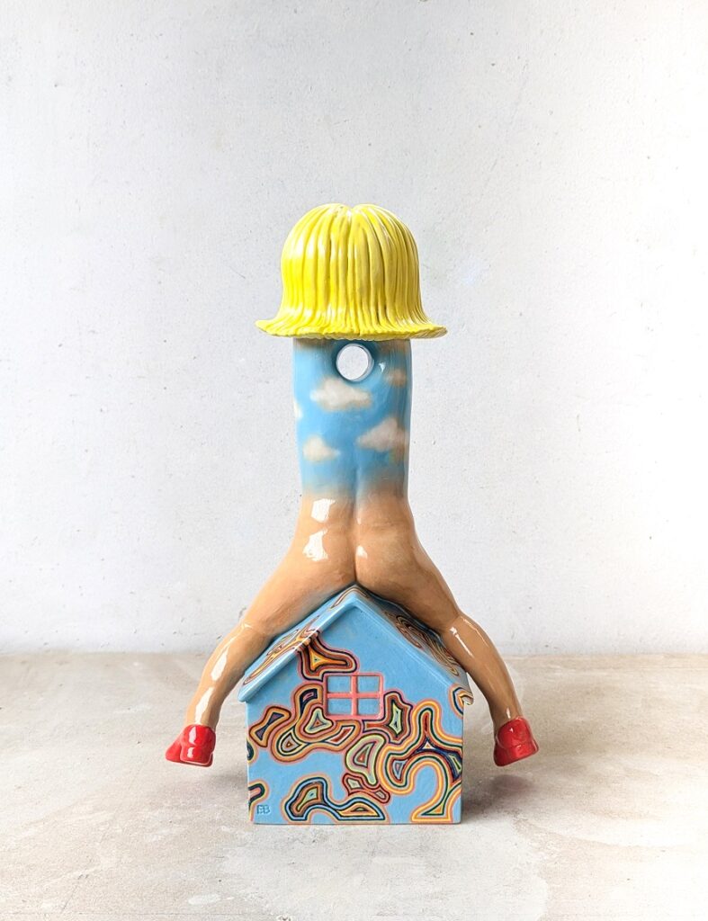 These anthropomorphic forms convey the absurdity and, at times, the discomfort of an unstable everyday life. They capture emotional states in a strangeness that is both delicate and poetic, infused with a humor that borders on the grotesque.