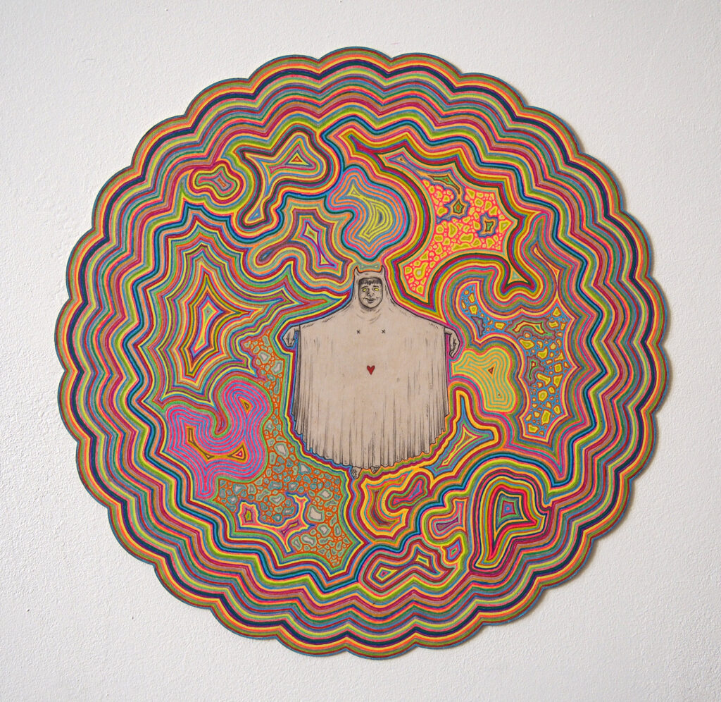 El triste, 2020, pencil, ink, colored pencil on paper, Ø 30 cm