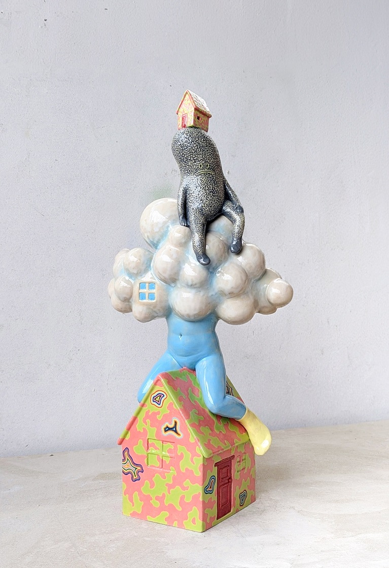 These anthropomorphic forms convey the absurdity and, at times, the discomfort of an unstable everyday life. They capture emotional states in a strangeness that is both delicate and poetic, infused with a humor that borders on the grotesque.