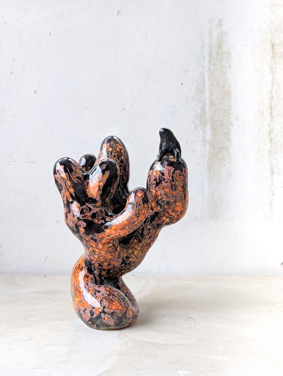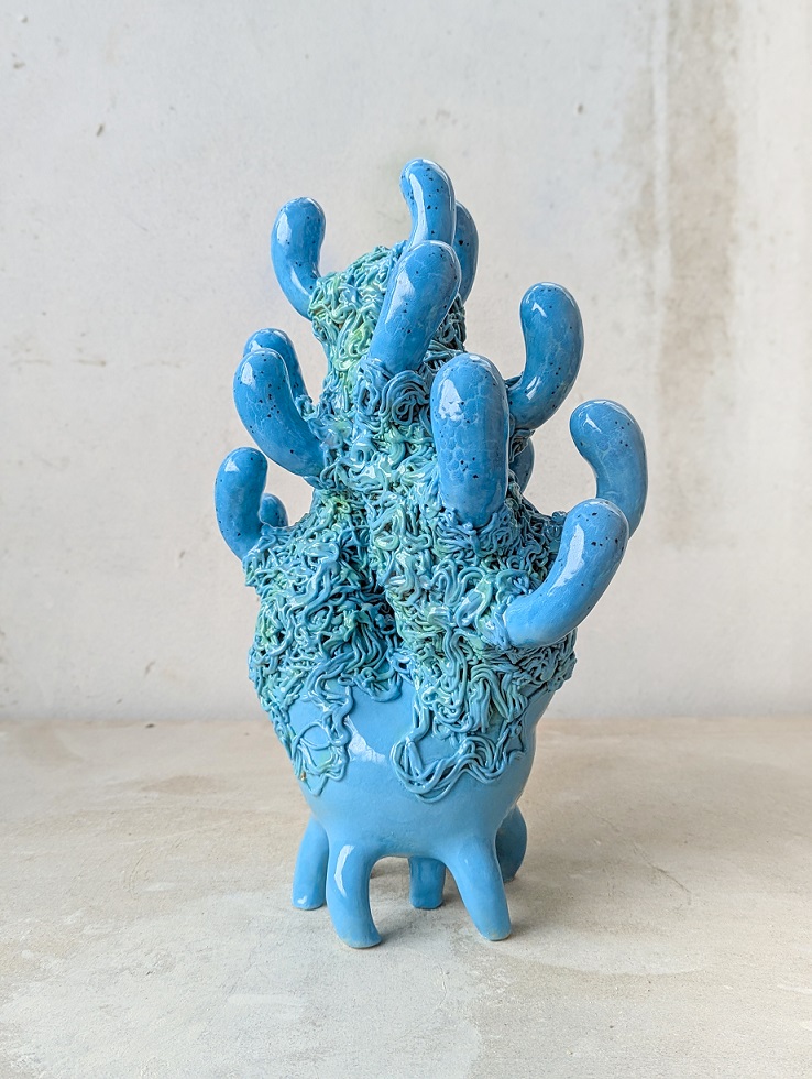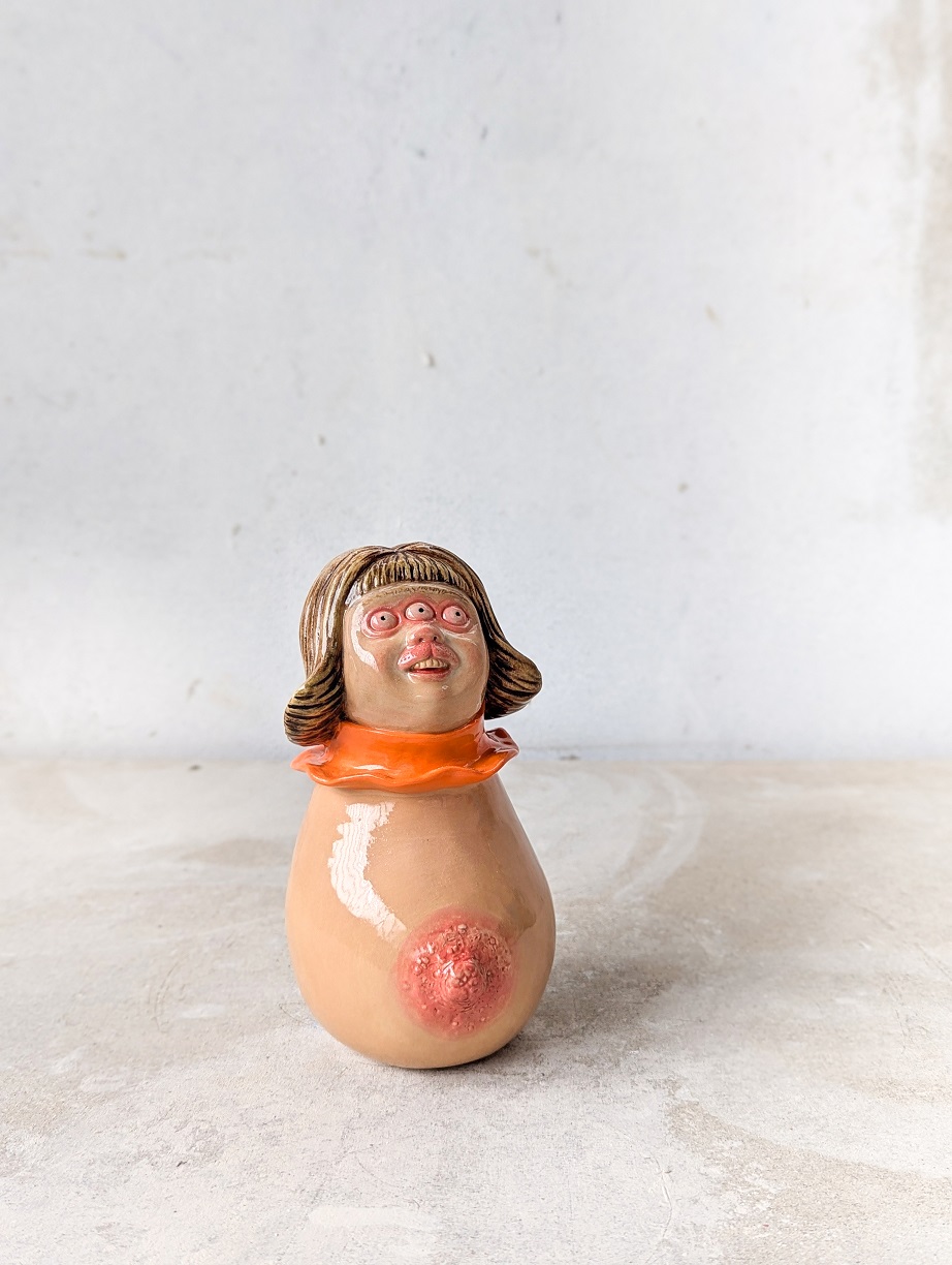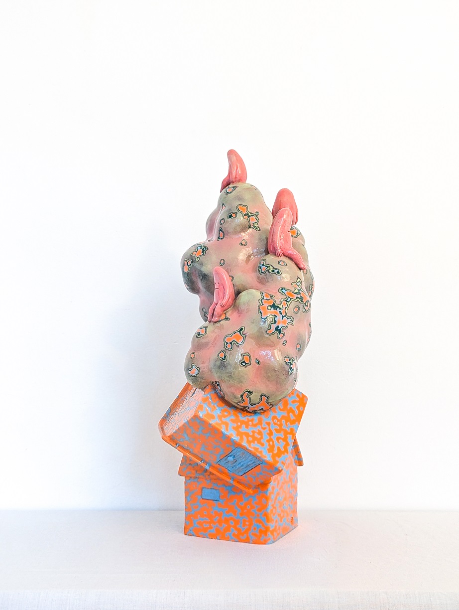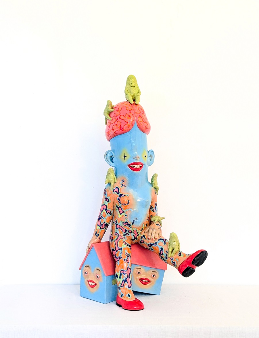 LA BONNE PAGE “ Quisiera ser un coral ” 2025. Grès, engobe, émail. 44 x 20 x 25 cm. “ Floctopuss ” 2025. Grès, engobe, émail. 70 x 36 x 36 cm. " Elmar " 2023. Grès, acrylique. 46 x 34.5 x12 cm. “ Lilicia ” 2025. Grès, engobe, émail. 79 x 25 x 25 cm. “ Soledad ” 2025. Grès, engobe, émail. 35 x 32 x 18 cm. “ Hoyito moi ” 2025. Grès, engobe, émail. 35 x 28 x 22 cm. “ Pricila ” 2025. Grès, engobe, émail. 35 x 32 x 18 cm. " Pina " 2025. Grès, engobe, émail. 45 x 20 x 18 cm. 2023. Grès, engobe, émail. 25 x 26 x 20 cm. “ Serpieste y escusado ” 2023. Grès, acrylique, laque. 30 x 26 x 20.5 cm. 2024. Grès, acrylique, laque. 21 x 15 x 15 cm. 2023. Grès, laque. 45 x 35 cm. 2023. Grès, laque. 45 x 35 cm. 2023. Crayons, gouache sur papier. 50 x 75 cm. 2023. Crayons, gouache sur papier. 50 x 75 cm.